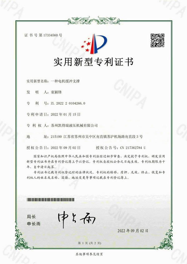 專利證書-一種電機(jī)緩沖支撐