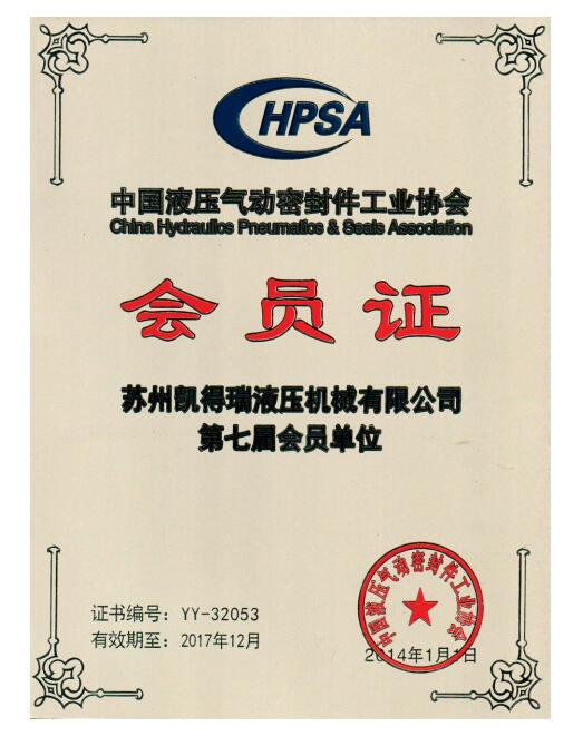 中國液壓氣動密封件工業(yè)協(xié)會會員證